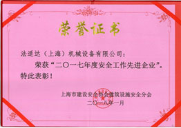 榮獲市“2017年度安全工作先進(jìn)企業(yè)”